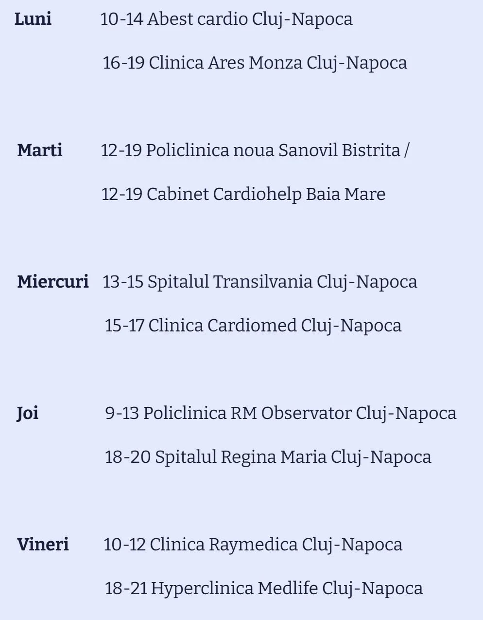 Pentru programari, vă rog să contactați direct clinica preferata din cele de mai jos folosind butonul aferent sau pe mine prin formularul de la finalul paginii.
